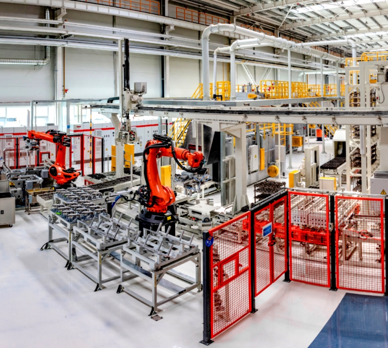用于新能源车电驱动减速器系统圆柱齿轮的研发与制造。核心设备全部采用世界一流品牌,具备滚齿、磨齿、珩齿、刮齿全套齿形加工工艺,配套行业最先进的全自动化真空热处理生产线以及车磨设备。齿形加工精度达到DIN4级,领先行业2-3级,台架寿命达到150万公里以上,提升50%。